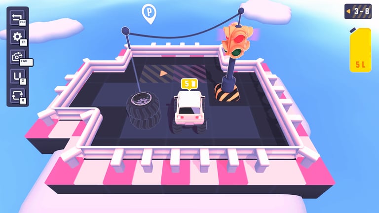 Park It! is a grid-based puzzle game where players must strategically maneuver vehicles to park them in the designated spot and correct direction, all while managing limited fuel.